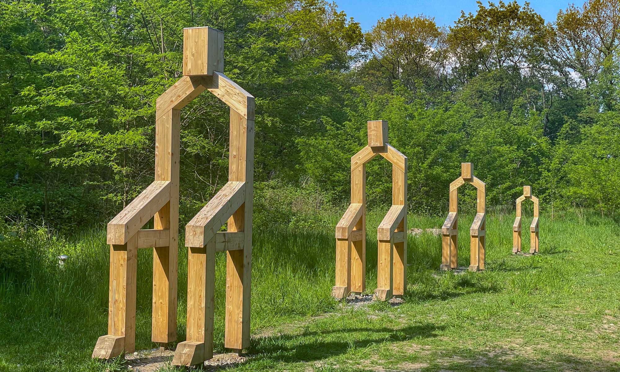Für das Ensemble wurde ein Standort im Vorster Wald auf dem Gelände des ehemaligen Fußballplatzes ausgesucht. Dieses Gelände wird derzeit aufgeforstet, wodurch sich die Figurengruppe organisch in den Naturraum einfügt.